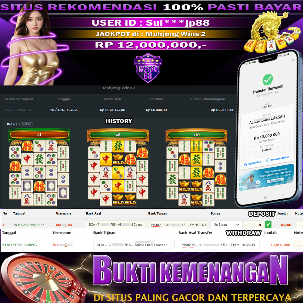 Dimana Lagi Anda Dapat Situs Slot Online Sekarang Yang Terpercaya Seperti WETON88 ? Kemenangan Member Di Proses Tanpa Bertele-tele, Jadi Tidak Perlu Anda Merasa Khawatir Pada Agen Situs Bandar Slot, Bola, Bandar Togel, Live Casino Seperti WETON88. Karena Kemenangan Besar Berapapun Akan Di Bayar Lunas Kepada Member/Gamers.
