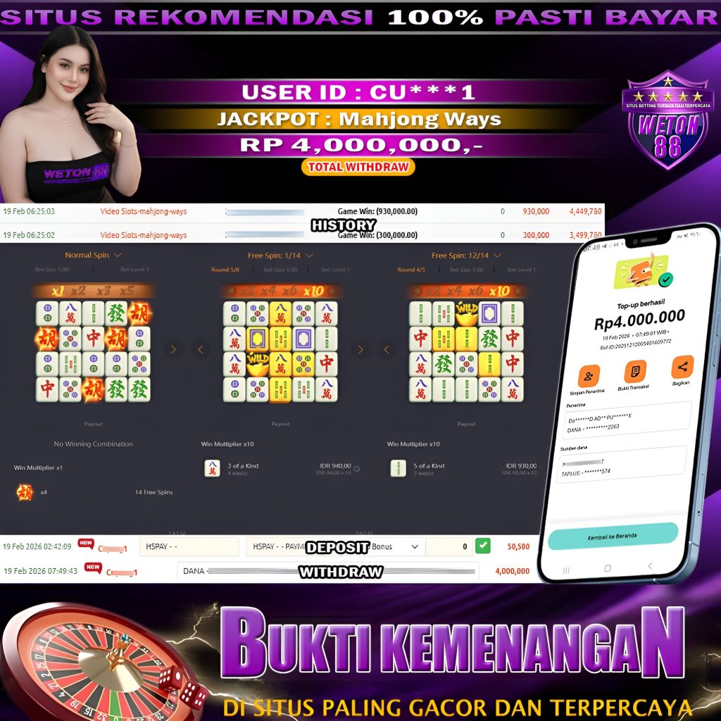 Dengan Proses Witdraw / Pelunasan Pembayaran Kepada Gamers Agen Slot Online Weton88 Dengan Durasi Paling Lama Memakan Waktu Minimal Kurang Dari 3 Sampai 5 Menit. Setelah Melakukan Pengisian Form Penarikan Dana Atau Bisa Di Sebut Dengan Withdraw, Tanpa Terkecuali Jika Bank Yang Di Tuju Memiliki Gangguan Pada Saat Melakukan Pengiriman Atau Transfer.