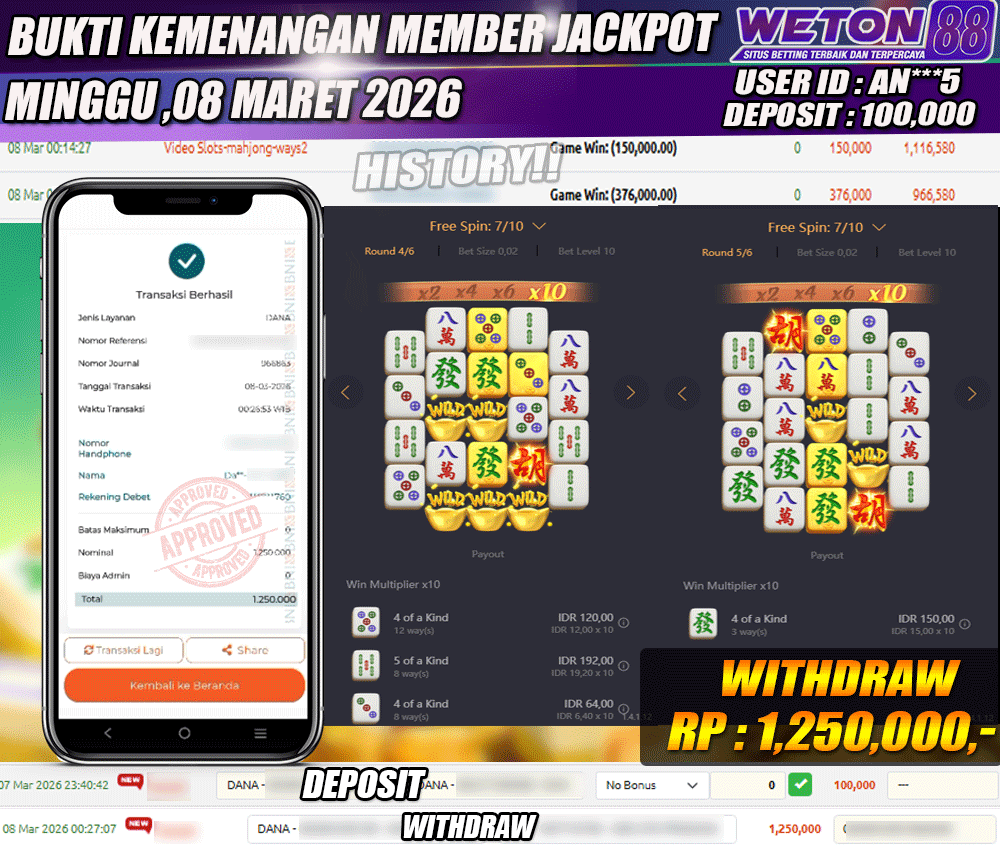 Dengan Proses Witdraw / Pelunasan Pembayaran Kepada Gamers Agen Slot Online Weton88 Dengan Durasi Paling Lama Memakan Waktu Minimal Kurang Dari 3 Sampai 5 Menit. Setelah Melakukan Pengisian Form Penarikan Dana Atau Bisa Di Sebut Dengan Withdraw, Tanpa Terkecuali Jika Bank Yang Di Tuju Memiliki Gangguan Pada Saat Melakukan Pengiriman Atau Transfer.